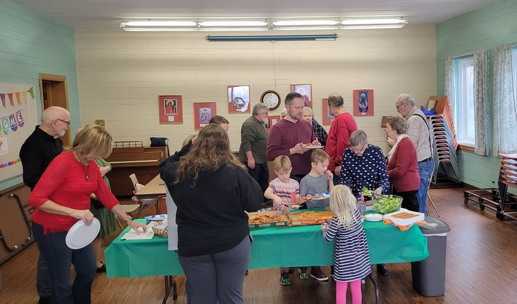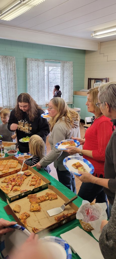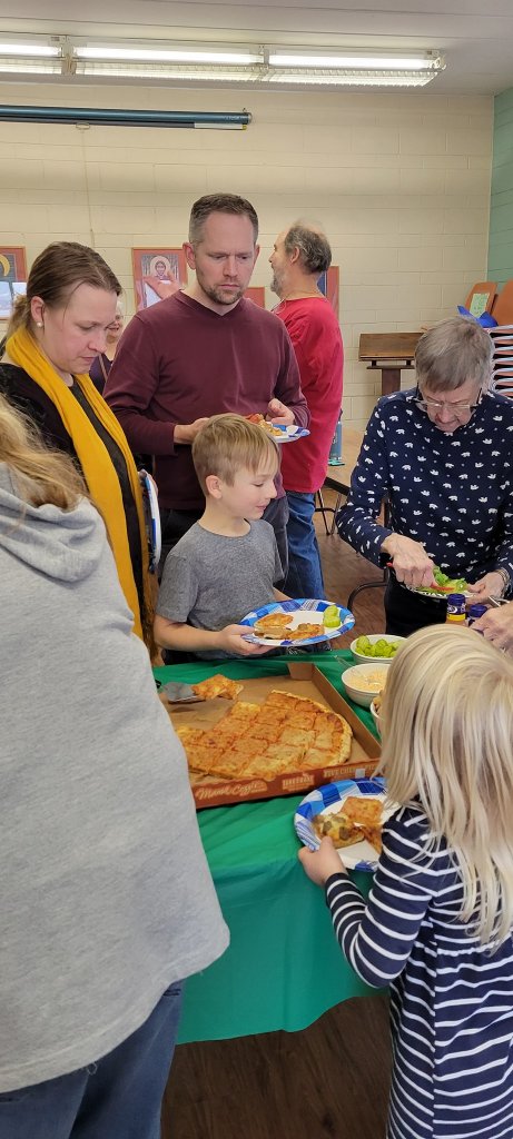 First we decorated the sanctuary for Advent, then we enjoyed lunch. Many hands made for quick work!