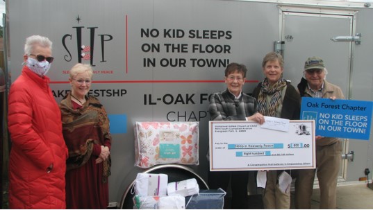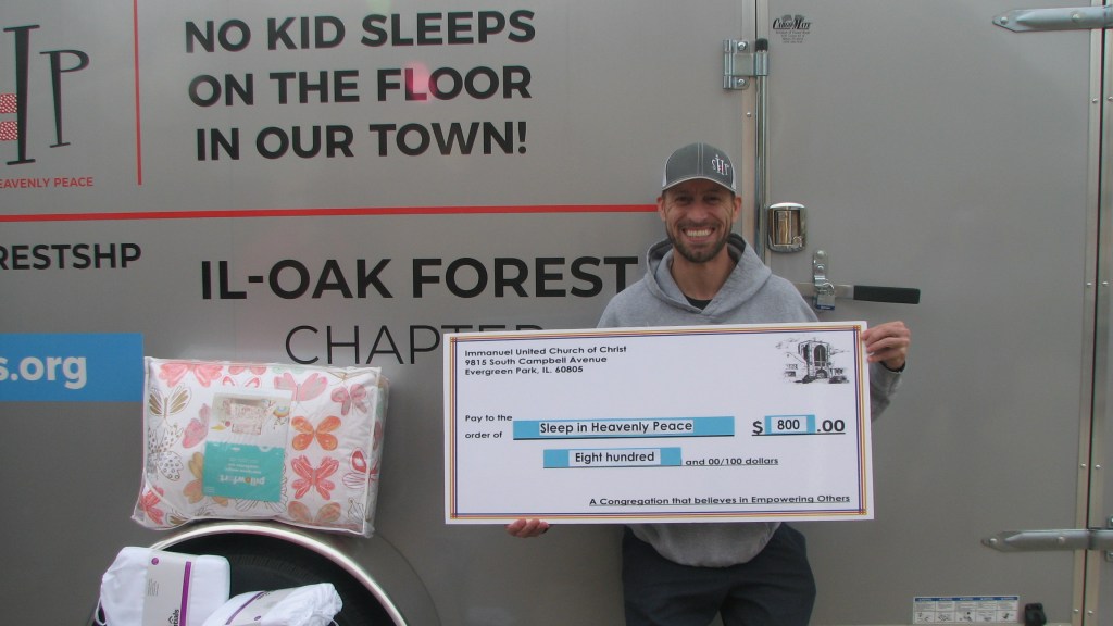 Sometimes our mission projects involve donations to organizations such as Heifer International, where their impact is felt in faraway locations. Yesterday, however, our committee was able to hand deliver our donation of 0 plus bedding to the Oak Forest chapter of Sleep in Heavenly Peace. Chapter President Dave King works out of his home to organize volunteers who build beds and deliver them to children in the surrounding area who have no bed of their own. Dave told us that his chapter has built about 200 beds so far, which are delivered to applicants who might have been the victims of a flood, a fire, poverty, or domestic violence. We were invited to accompany Dave and his volunteers on a bed delivery in the near future.