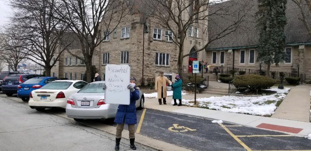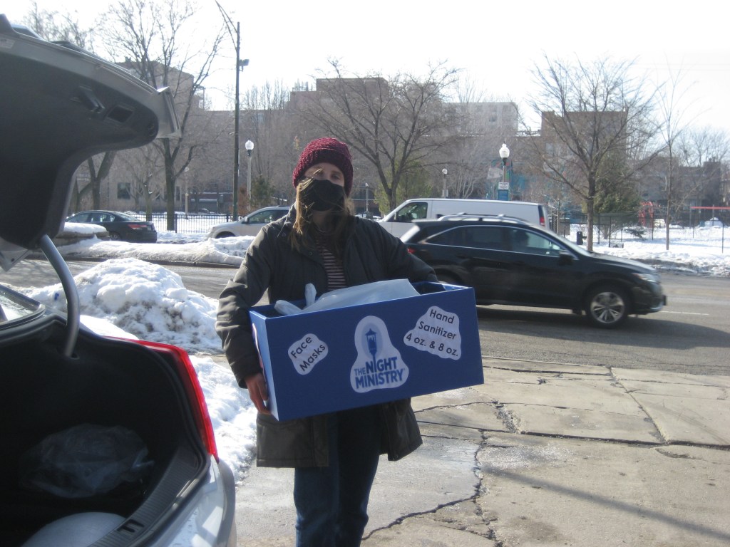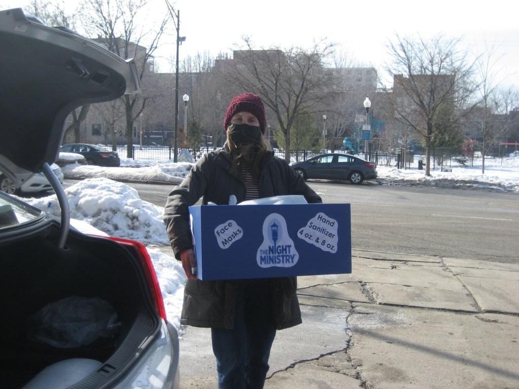 Mid-drive delivery for The Night Ministry from Immanuel United Church of Christ – 400 masks and 48 bottles of hand sanitizer. Collection of masks and 4 or 8 oz. hand sanitizer will continue through the end of March. Monetary donations (payable to Immanuel UCC) are also accepted. One check will be written at the end of our collection.