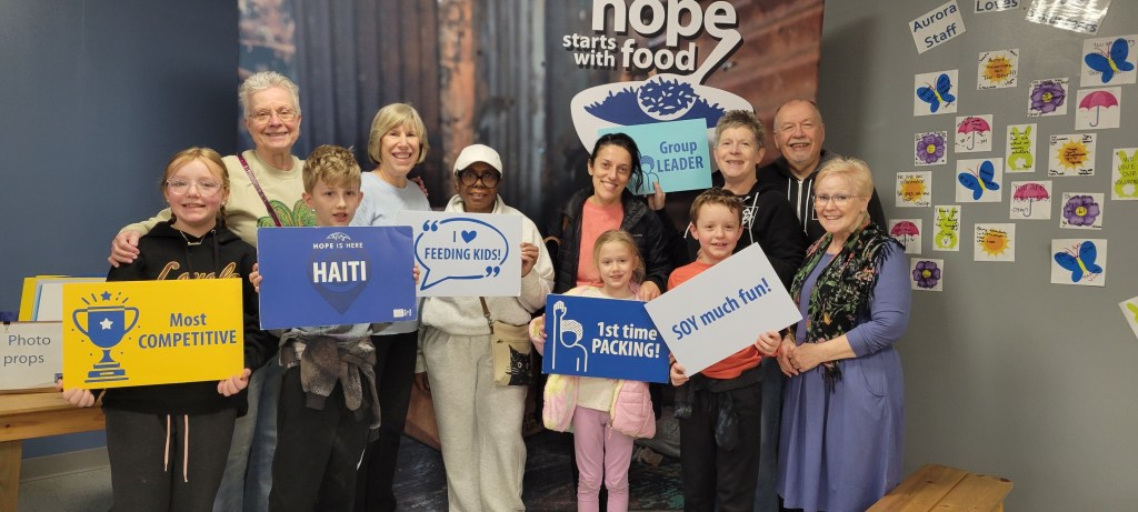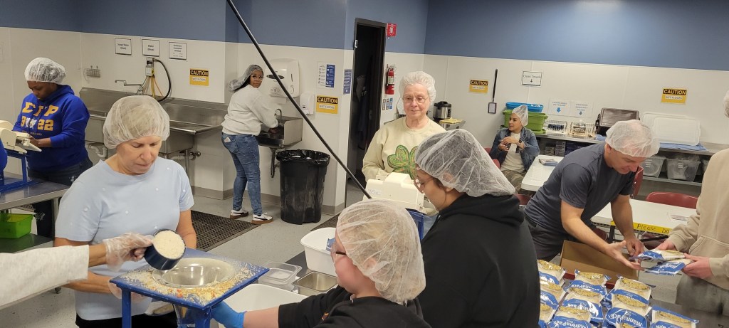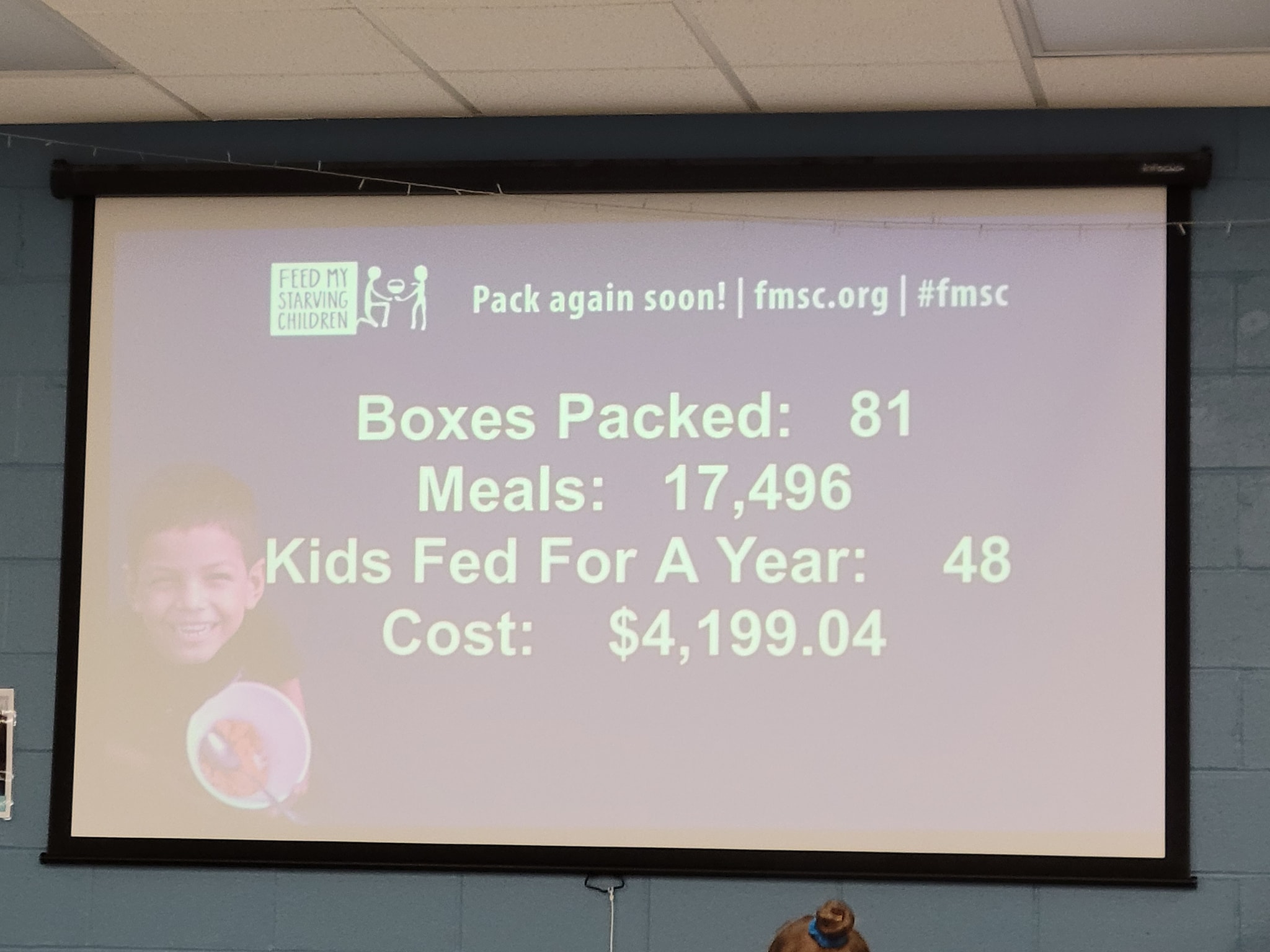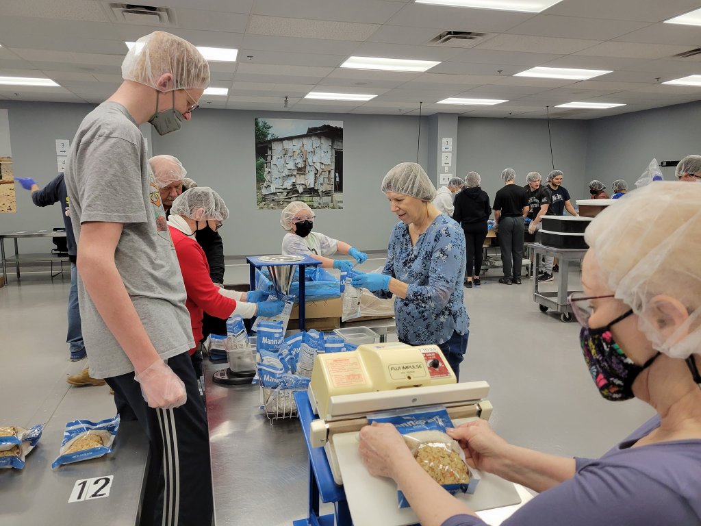 A group of 11 of us ventured out on April 26 to Feed My Starving Children in Aurora to pack food for children in Haiti.