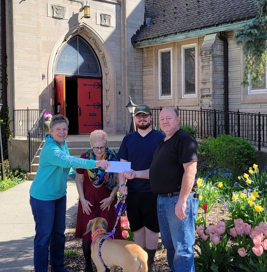 Today we delivered a check for $612 to our members Brad and Nolan Rahm designated for P.A.W.S. of Tinley Park. The Rahm family are passionate supporters and volunteers at P.A.W.S. They brought along Gretel, their latest foster, and soon to be forever dog. This Great Dane baby is only 14 weeks old. She was brought to the shelter along with her brother Hansel because she was born with a cleft palate. She really wanted to look at who was behind her, so Pastor Mary Beth lured her to look at the camera.