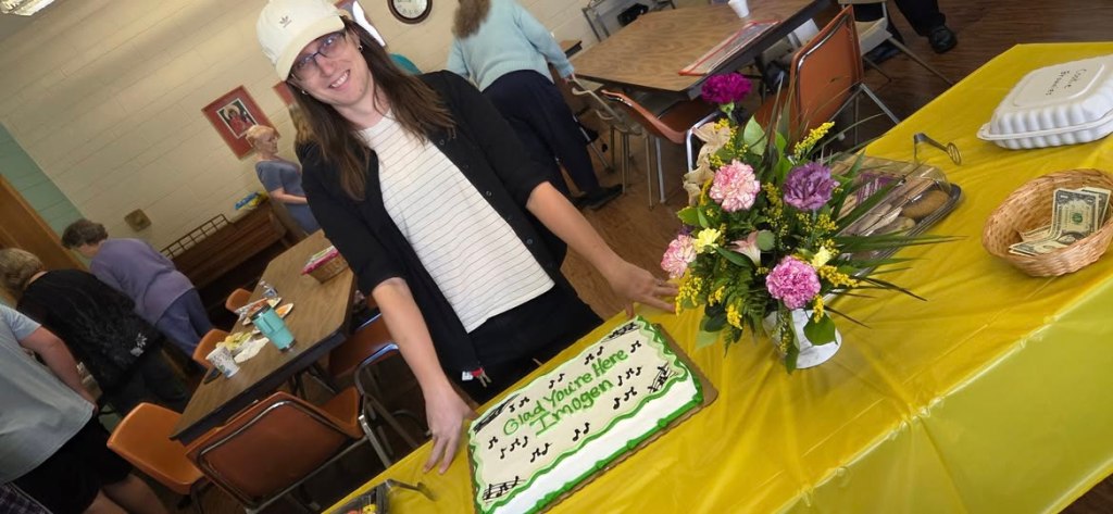 Imogen Smith has been with us as our Music Director for several months. We got around to celebrating her wonderful musical contributions to our worship last Sunday. Thank you, Imogen, for blessing us with your talent!