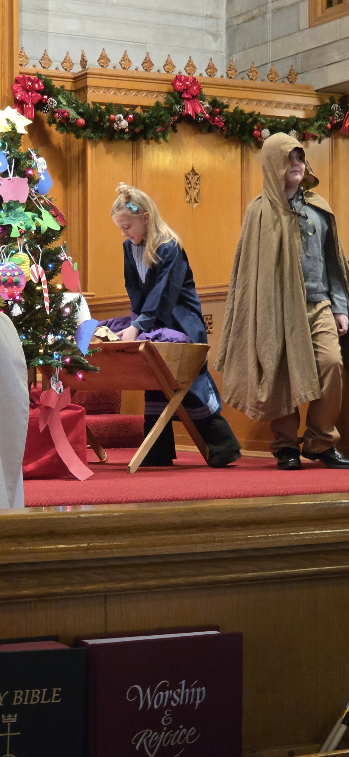 Our Sunday School taught us about the symbols of Christmas during worship this morning. Who doesn’t love kids in costume gathered around a manger?